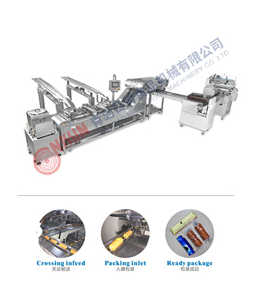 該機是我公司QNF360機型的換代產(chǎn)品。該無托盒包裝機使用伺服電機控制,使該機自動化程度進(jìn)一步提升、性能更加穩(wěn)定可靠、操作更加簡便。最顯著的特點是:包裝產(chǎn)品尺寸變換非常簡單。 用 途: 適用于多枚餅干的無托盤集合大包裝,方、圓、橢圓等各種形狀餅干皆可。 主要技術(shù)參數(shù): 包裝能力:30-100包/分(據(jù)包裝膜材質(zhì),厚度及包裝規(guī)格確定) 包裝規(guī)格:長100-240mm,寬40-80mm,高40-70mm 總機尺寸:主機部分4020mm*1150mm*1840mm 供料部分3100*580mm*1130mm 裝機總?cè)萘浚?.2KW, 單相 220V, 50Hz 總重量:1200kg 包裝材料:紙/PE,OPP/PE,OPP/AL/PE等適合于加熱封口的包裝材料 機械特性 l 機械結(jié)構(gòu)的整體設(shè)計簡單、合理,操作簡便,調(diào)節(jié)方便 l 使用夾運輸送機構(gòu),完全可靠的解決了包裝不同長度物品尺寸變換的繁瑣及倒餅的弊病。 l 縱封裝置采用三對牽引輪構(gòu)成,保證封口高速封合、穩(wěn)定、美觀。 l 精巧的自動供料裝置可將包裝物準(zhǔn)確無誤投放于主機進(jìn)入包裝封口。 l 包裝尺寸調(diào)節(jié)方便快捷。 電氣特性 l 送膜、供料采用數(shù)字伺服電機控制系統(tǒng) l 供料部分采用運動控制單元,供料同步、準(zhǔn)確、自動記憶 l 變頻調(diào)速,方便、準(zhǔn)確、可靠 l 色表追蹤點自動定位、自動跟標(biāo) l 包裝袋自動測量、記憶 l 供料位置即使在運動中也可隨意調(diào)整